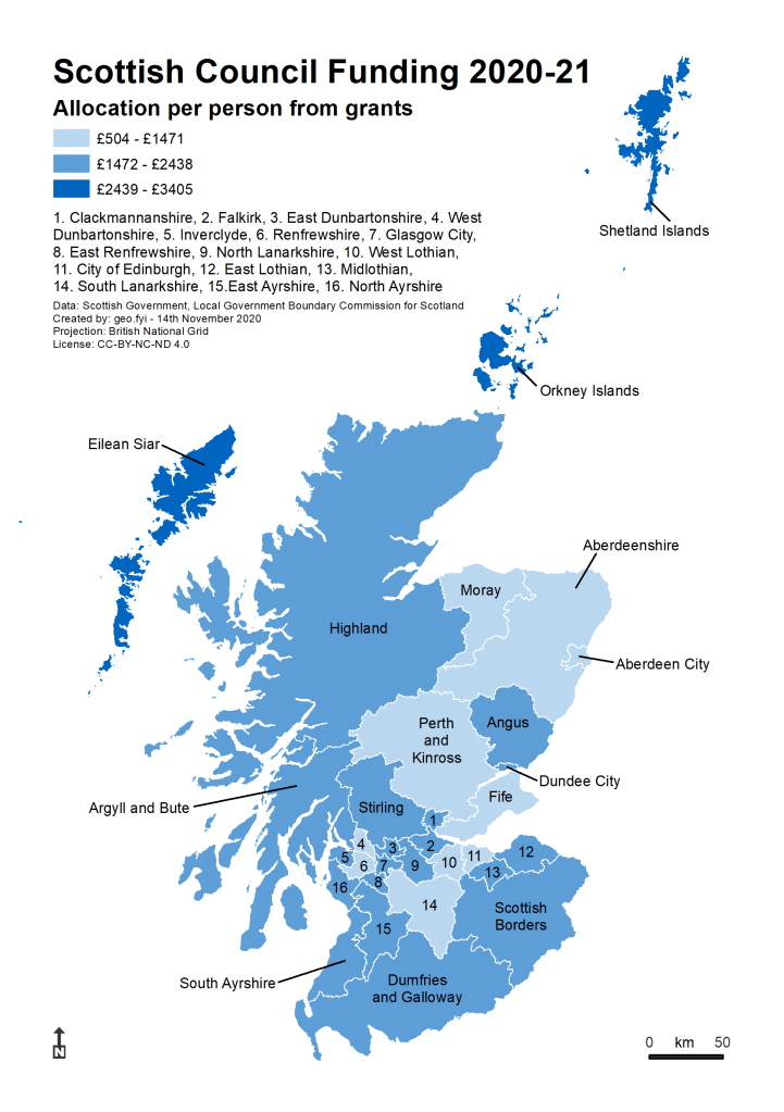 This month, Scottish Government released a publication detailing how £12.7 billion of general funding was distributed to Scotland’s 32 councils for 2020-21. The funding distribution considered 168 service areas listed in the Local Government Finance Green Book and was agreed by the 32 councils and the Convention of Scottish Local Authorities (COSLA).