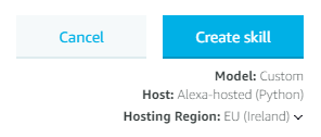 3. In the top right of the page, choose a nearby ‘Hosting Region’ and click the ‘Create Skill’ button.