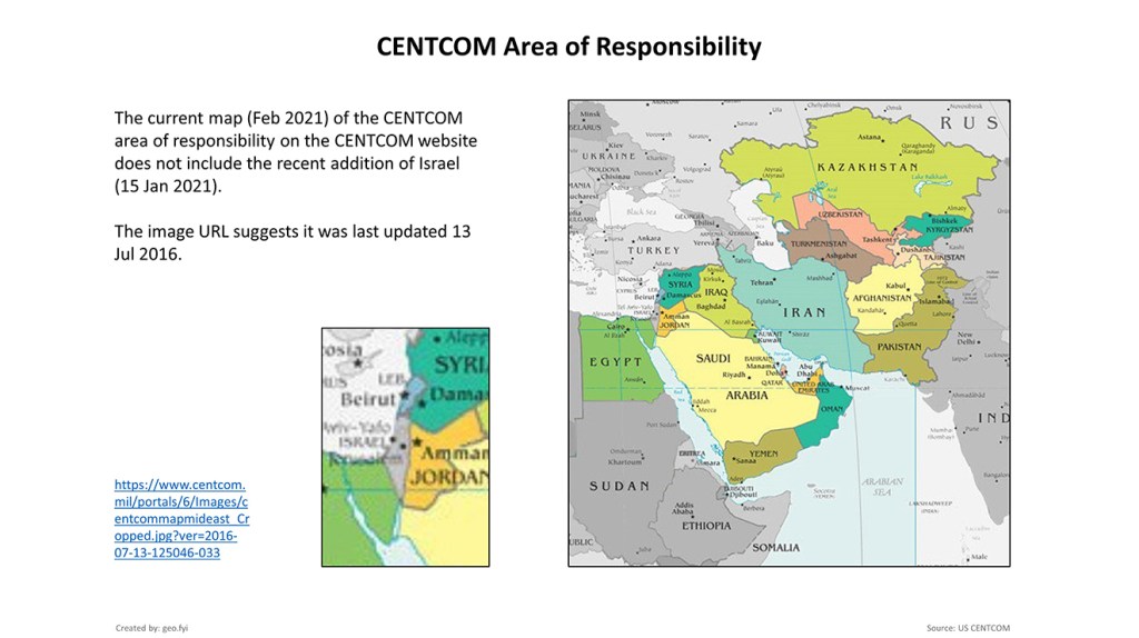 Towards the end of his presidency, President Trump ordered the Pentagon to move Israel to CENTCOM’s AOR and on the 15th January 2021 the DOD published a press release stating: