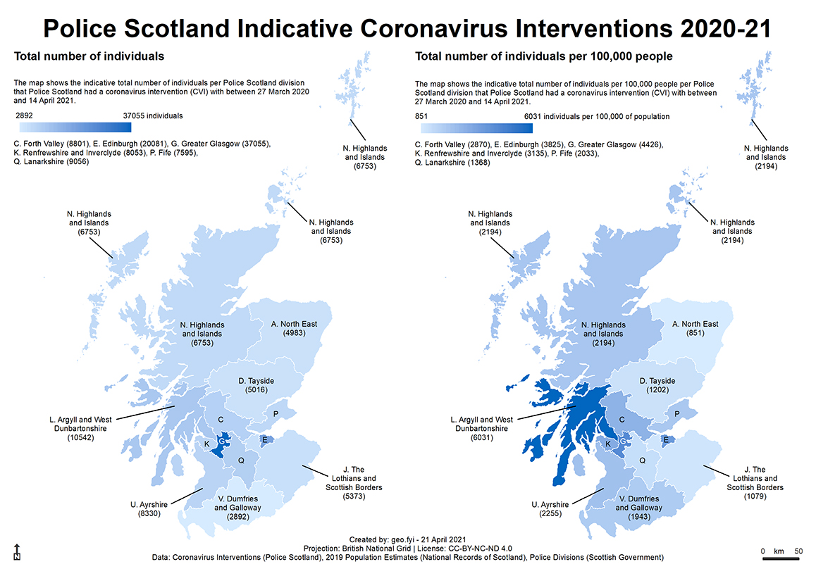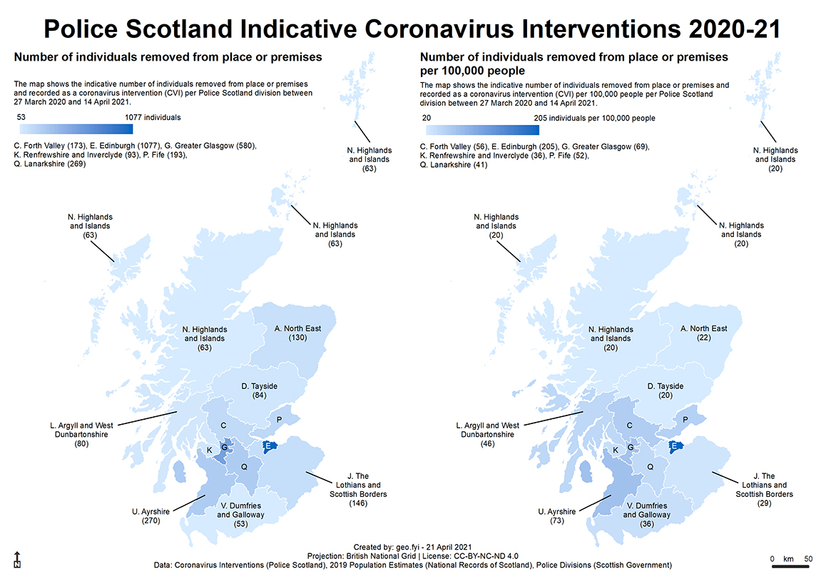 In response to the introduction of The Health Protection (Coronavirus) (Restrictions) (Scotland) Regulations 2020 and Coronavirus Act 2020, Police Scotland has developed a ‘Coronavirus Interventions’ (CVI) recording system.